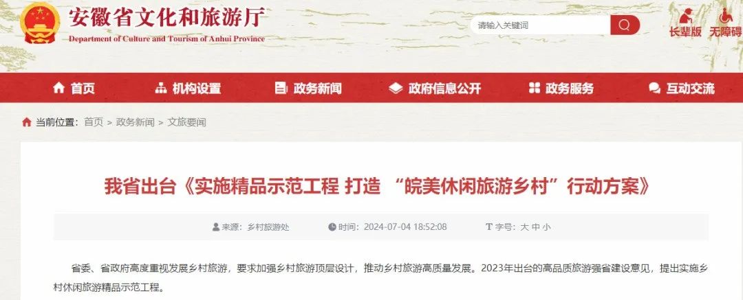 為推動全省鄉村旅游發展提質增效,更好滿足人民群眾旅游消費升級需求,安徽省委、省政府高度重視發展鄉村旅游,要求加強鄉村旅游頂層設計,推動鄉村旅游高質量發展,......