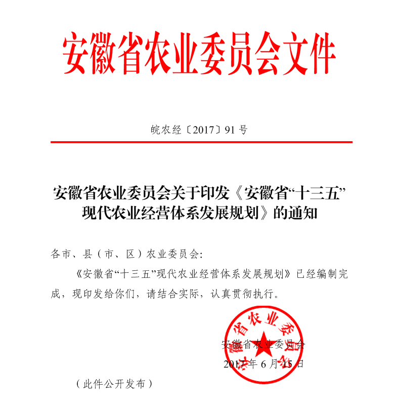 近日,省農(nóng)委印發(fā)《安徽省“十三五”現(xiàn)代農(nóng)業(yè)經(jīng)營體系發(fā)展規(guī)劃》,明確了當(dāng)前及以后一段時間農(nóng)業(yè)經(jīng)營體系發(fā)展目標(biāo)及任務(wù)。...