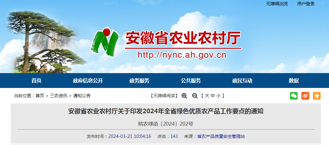 各市、縣(市、區)農業農村局,廳屬有關單位:現將《2024年全省綠色優質農產品工作要點》印發給你們,請結合實際,認真抓好落實。安徽省農業農村廳2024年3月20......