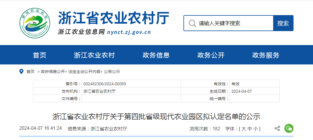 根據《浙江省現代農業園區、特色農業強鎮驗收辦法(試行)》和《關于開展2023年度省級現代農業園區創建申報和第四批省級現代農業園區驗收工作的通知》要求,經省農業農......