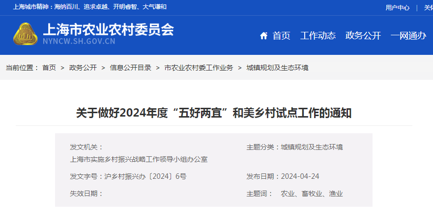 相關涉農區實施鄉村振興戰略工作領導小組辦公室:按照《關于印發〈上海市2024年“五好兩宜”和美鄉村試點工作方案〉的通知》(滬農委〔2023〕408號)工作要求,......