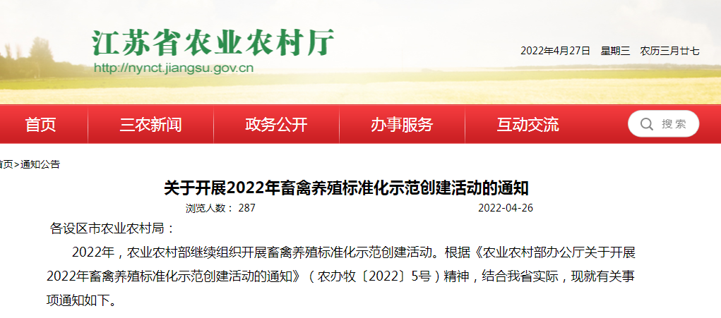 各設區市農業農村局:2022年,農業農村部繼續組織開展畜禽養殖標準化示范創建活動。根據《農業農村部辦公廳關于開展2022年畜禽養殖標準化示范創建活動的通知》(......