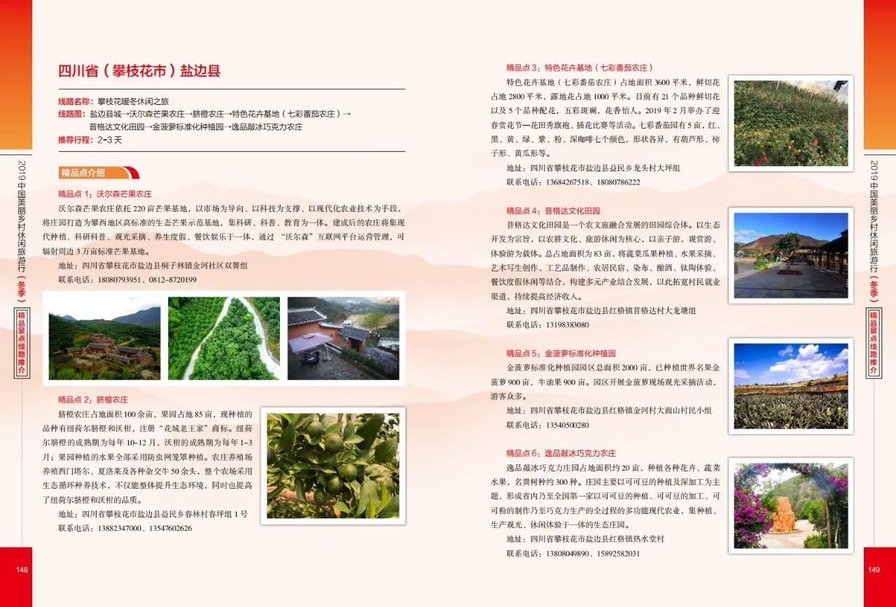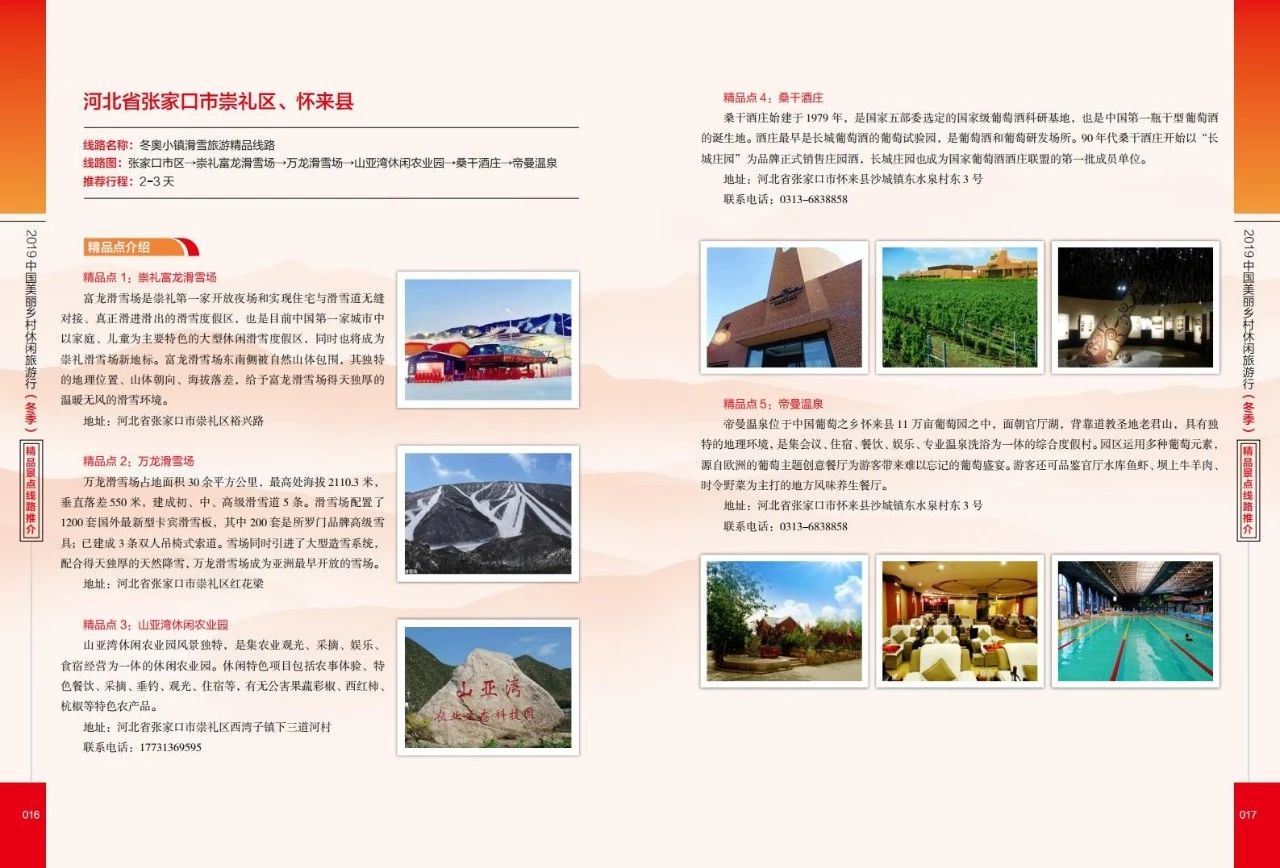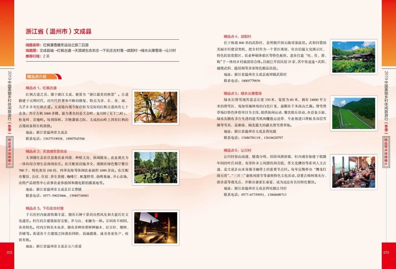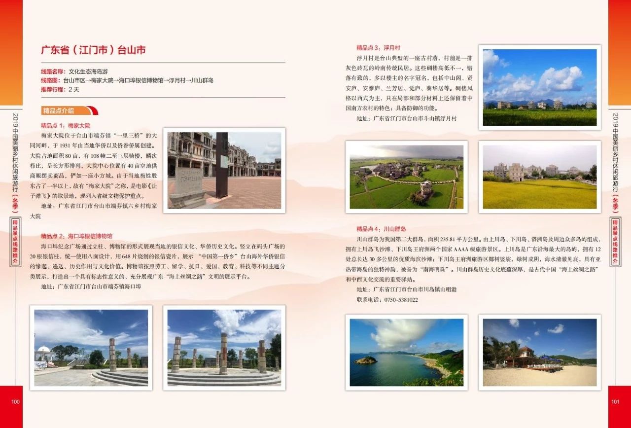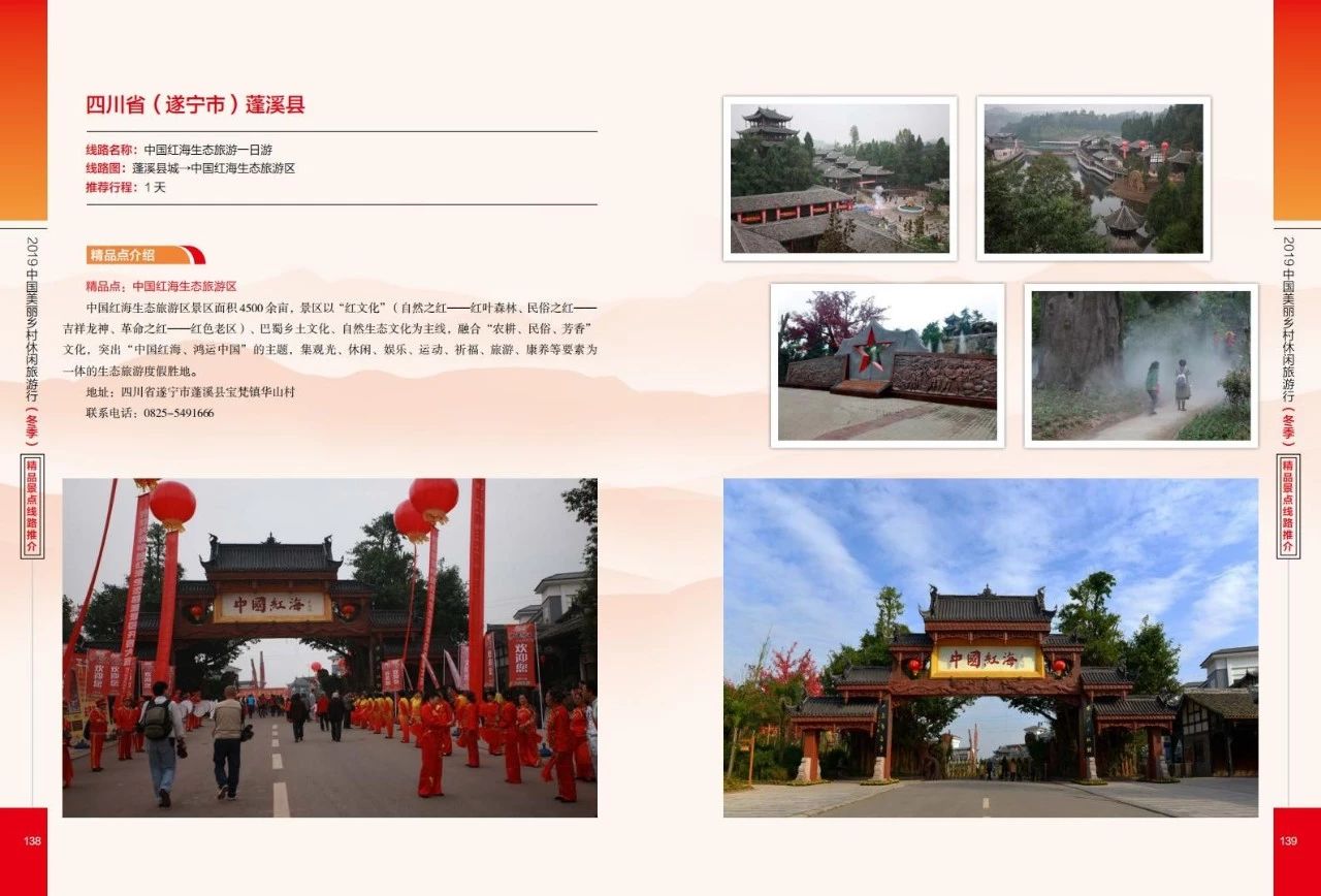 12月24日,2019中國美麗鄉村休閑旅游行(冬季)推介活動在海南省瓊海市博鰲鎮舉辦,發布休閑農業和鄉村旅游冬季精品旅游線路100條、景點273個。這是農業農村部鄉村休閑旅游“春觀花”“夏納涼”“秋采摘”“冬農趣”系列推介活動中的冬季主題活動。至此,2019年四季活動共推介線路410條、景點1300個,精品景點線路37條。