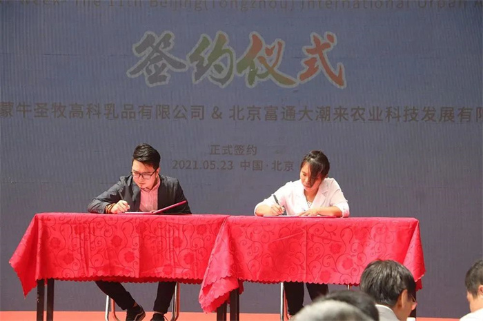 北京富通大潮來農業科技發展有限公司與內蒙古蒙牛圣牧高科乳品有限公司、北京明興旭豐產銷專業合作社、河北一航新能源科技有限公司分別就蒙牛冰品系列產品供銷、區域農產品生產流通、生產基地綠色防控方面簽署了合作協議。