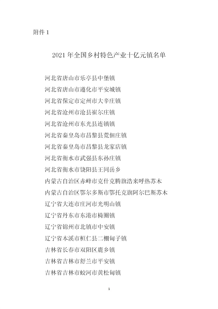 附件:2021年全國鄉(xiāng)村特色產(chǎn)業(yè)十億元鎮(zhèn)億元村名單