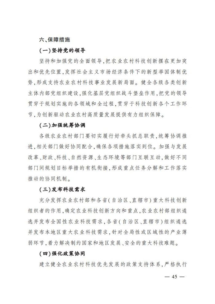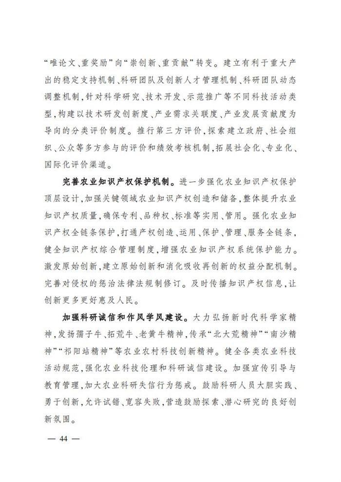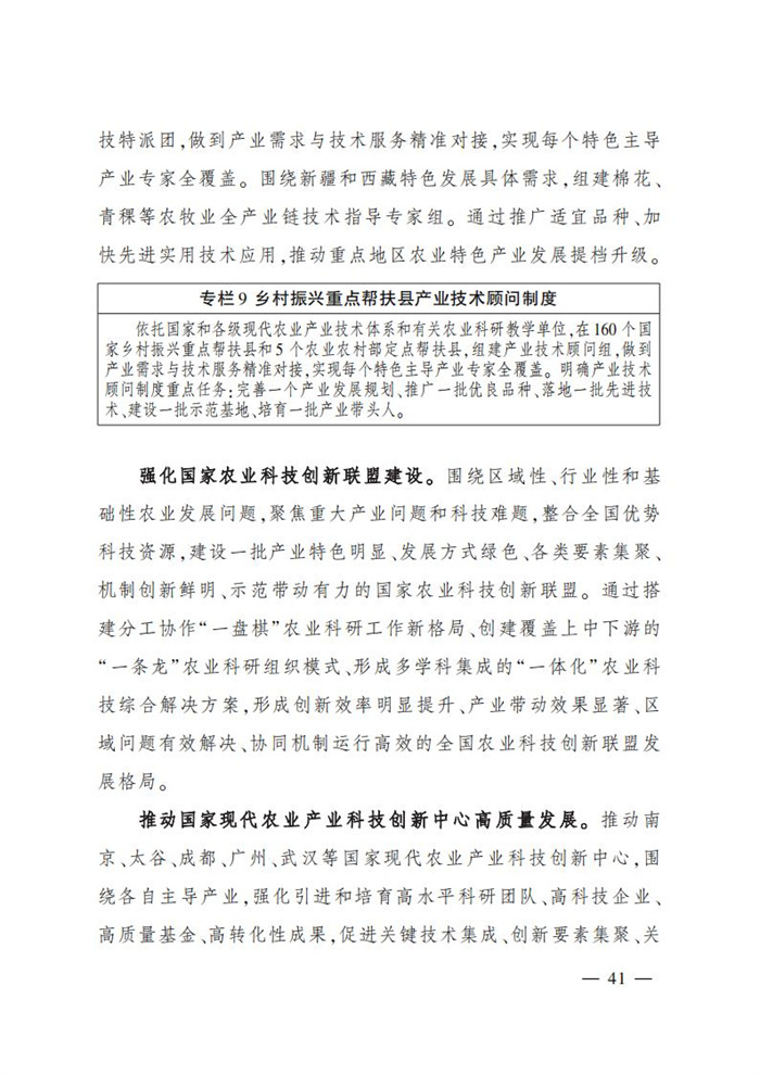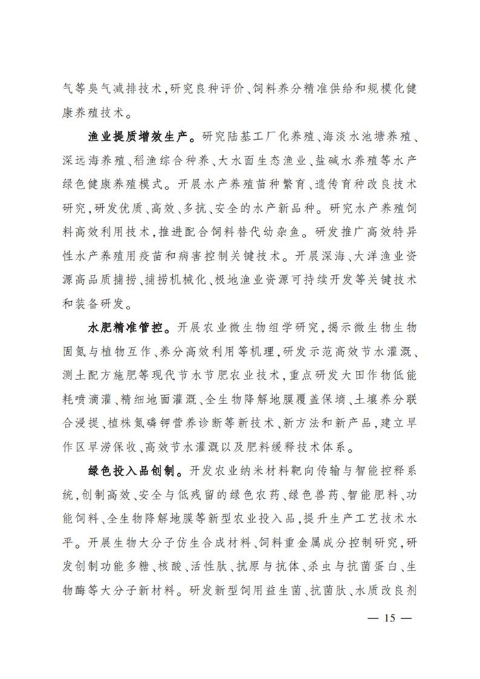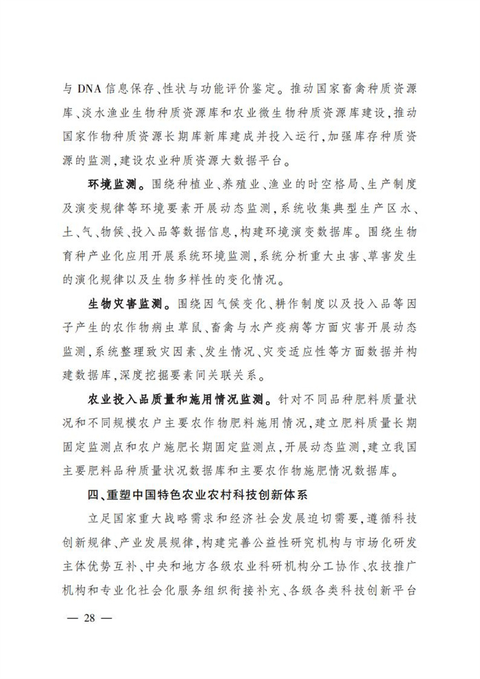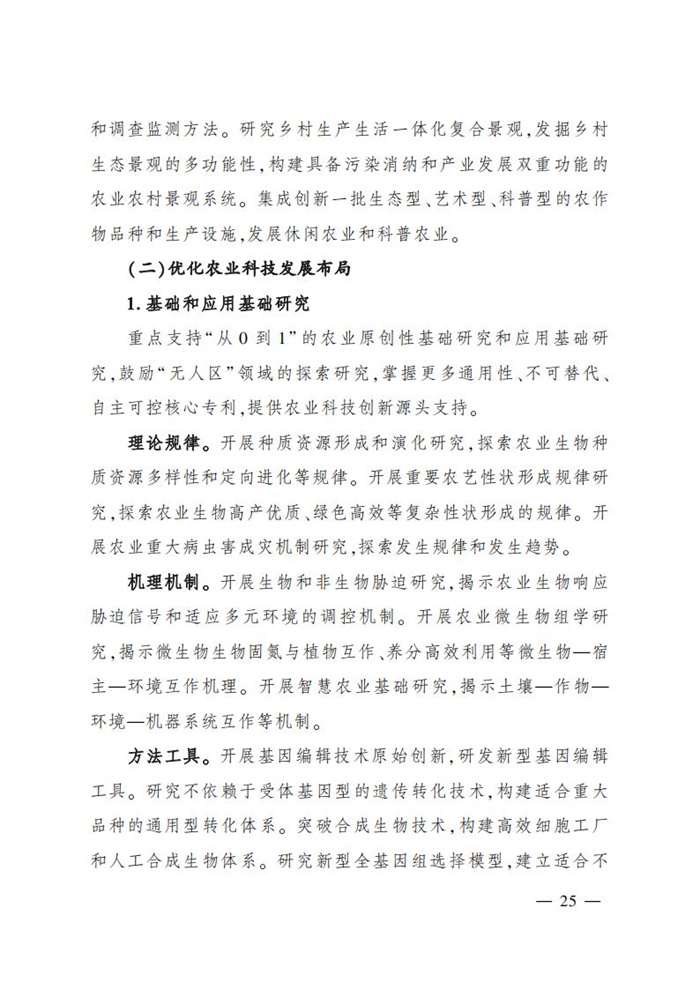 ———農業關鍵核心技術產品取得新突破。力爭在基因組學、作物雜交育種理論、預防獸醫學、重大病蟲害成災機理等方向取得一系列基礎理論突破,支撐更多領域實現“從0到1”的原創性突破創新,前沿新興交叉融合技術重大成果加速涌現,形成核心種源、耕地保育、智慧農業元器件、農業大數據算法、農機裝備、農業綠色投入品等領域一批具有自主知識產權的核心技術產品。