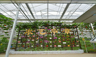 創意農業體驗區內,11000平米的連棟玻璃溫室分為“農藝華章”、“蔬藝花苑”、“和美田園”三個主題場館,薈萃了300余個新奇特果蔬、花卉品種。在這里,科技并不遙遠、農業同樣藝術,農業與創意的完美結合,拉近了都市居民與鄉村田園的心理距離,讓農業真正走入了人們的生活。