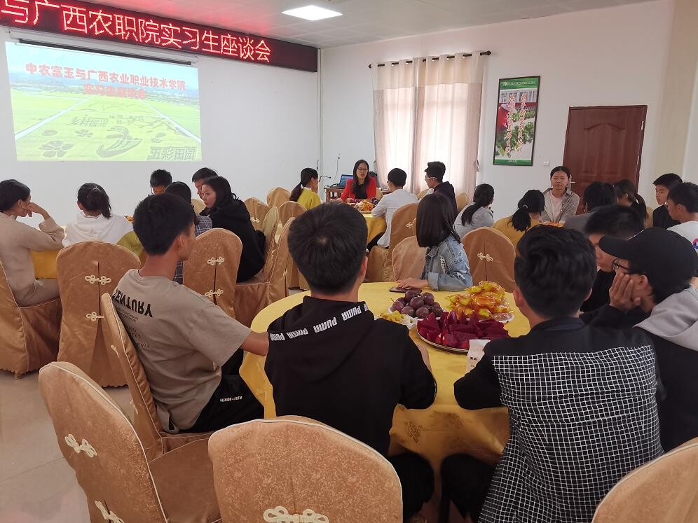 ▼11月26日,中農富玉與廣西農職院實習生舉行座談會。公司領導勉勵同學們抓住機遇,迎接挑戰。希望同學們在自己的崗位上克服困難、再接再厲,掌握更多的實際操作技能,為之后的工作,打下堅實的基礎。