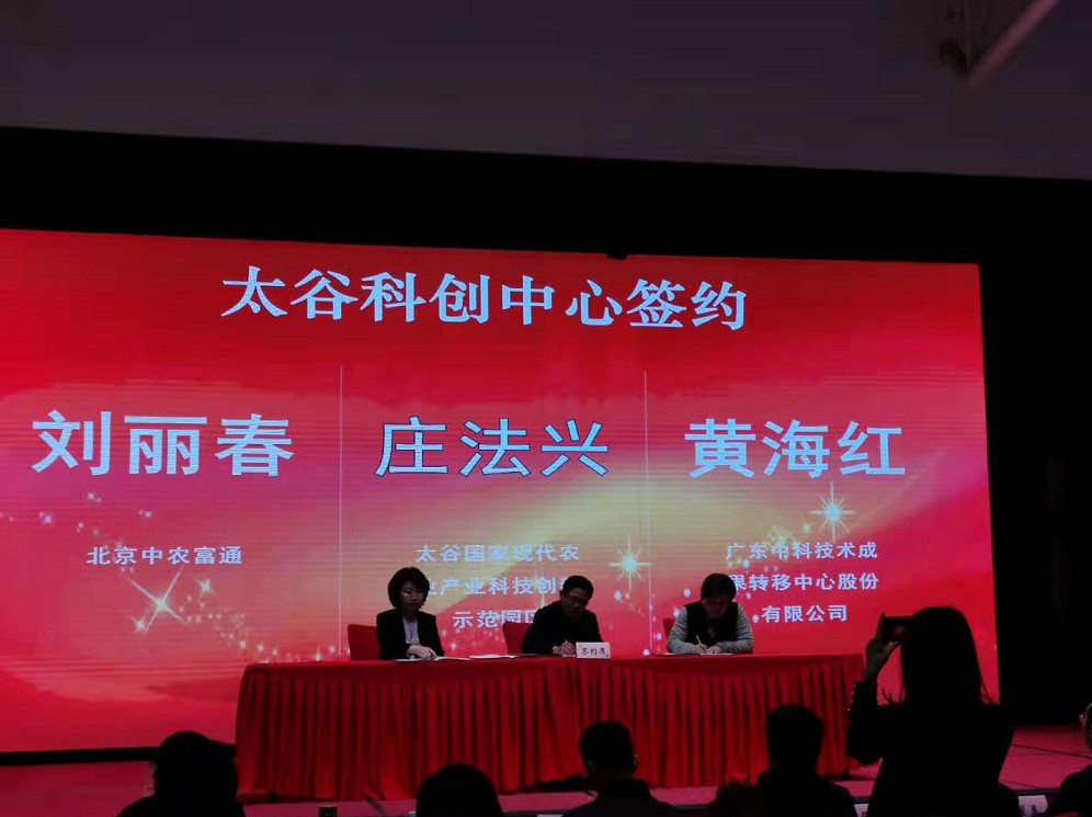 ▼11月4日,北京中農富通園藝有限公司與太谷農業產業科技創新中心簽署合作協議,達成全面戰略合作,公司總經理劉麗春女士出席簽約儀式。據悉,太谷國家現代農業產業科技創新中心以發展有機旱作農業為主題,以雜糧、畜牧、園藝三大產業為重點,將引領山西特色現代農業發展,進而打造山西農谷綜合性、專業性科創中心。