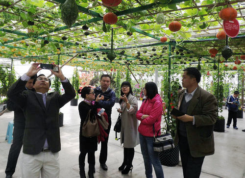代表們參觀了農(nóng)業(yè)創(chuàng)意館五個展館,農(nóng)業(yè)體驗館四個展館,對“蔬情畫意”館中的品種及種植方式表示濃厚的興趣,并從各個方面了解了嘉年華的運作模式。代表們對農(nóng)業(yè)嘉年華的形式大加贊賞,認為嘉年華形式豐富,內(nèi)容多樣,極具吸引力。代表們表示,目前在越南尚無農(nóng)業(yè)旅游的概念,希望能與中農(nóng)富通攜手合作,將此形式引入越南,以帶動越南旅游農(nóng)業(yè)的發(fā)展。