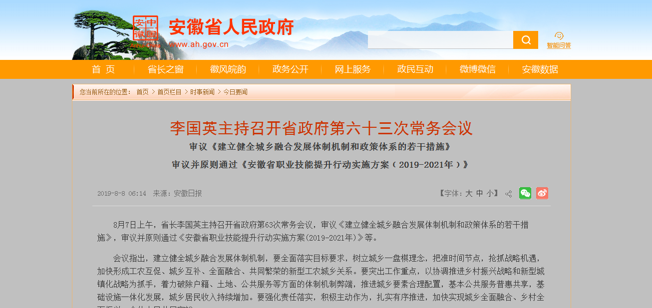 省長(zhǎng)李國(guó)英主持召開(kāi)省政府第63次常務(wù)會(huì)議,審議《建立健全城鄉(xiāng)融合發(fā)展體制機(jī)制和政策體系的若干措施》等。...