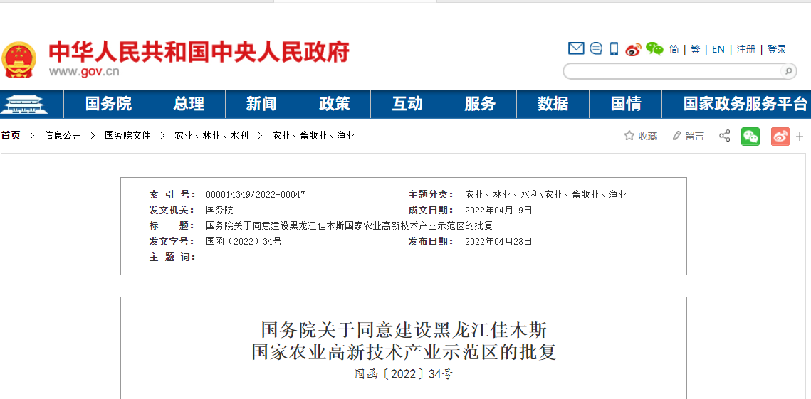 國務院關于同意建設吉林長春國家農業高新技術產業示范區的批復國函〔2022〕33號吉林省人民政府:你省關于將吉林公主嶺國家農業科技園區升級為國家農業高新技術產業示......